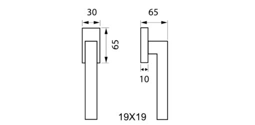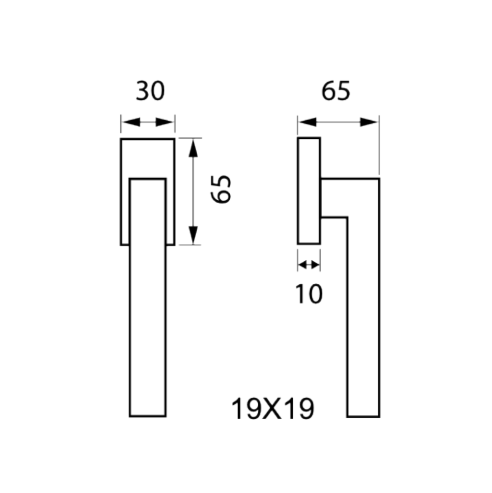 Analizzando i dati tecnici, il prodotto presenta un'impugnatura a sezione quadra di 19x19 mm, la quale trasmette una sensazione di solidità e precisione al tatto. Allo stesso tempo, la rosetta rettangolare misura 30 mm di larghezza e 65 mm di altezza, integrandosi armoniosamente sui profili degli infissi moderni. Oltre a ciò, lo spessore della base è di soli 10 mm, un dettaglio che permette di mantenere il profilo della finestra leggero ed elegante. Per quanto riguarda l'ingombro, la profondità totale di 65 mm garantisce un'ergonomia ottimale per l'azionamento quotidiano.