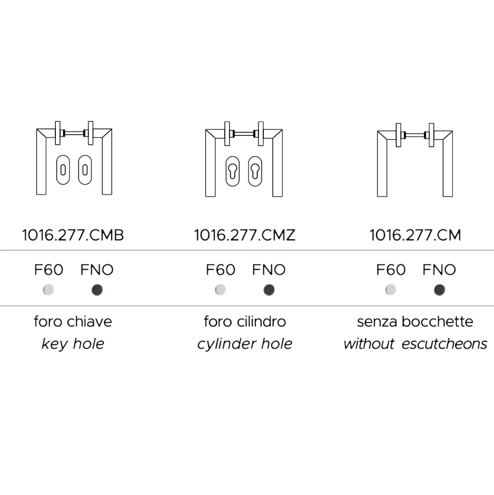 Per concludere, il set è disponibile nelle varianti F60 (Satinato) e FNO (Nero Opaco). In particolare, la finitura nera applicata sulla base metallica risulta estremamente resistente agli urti.