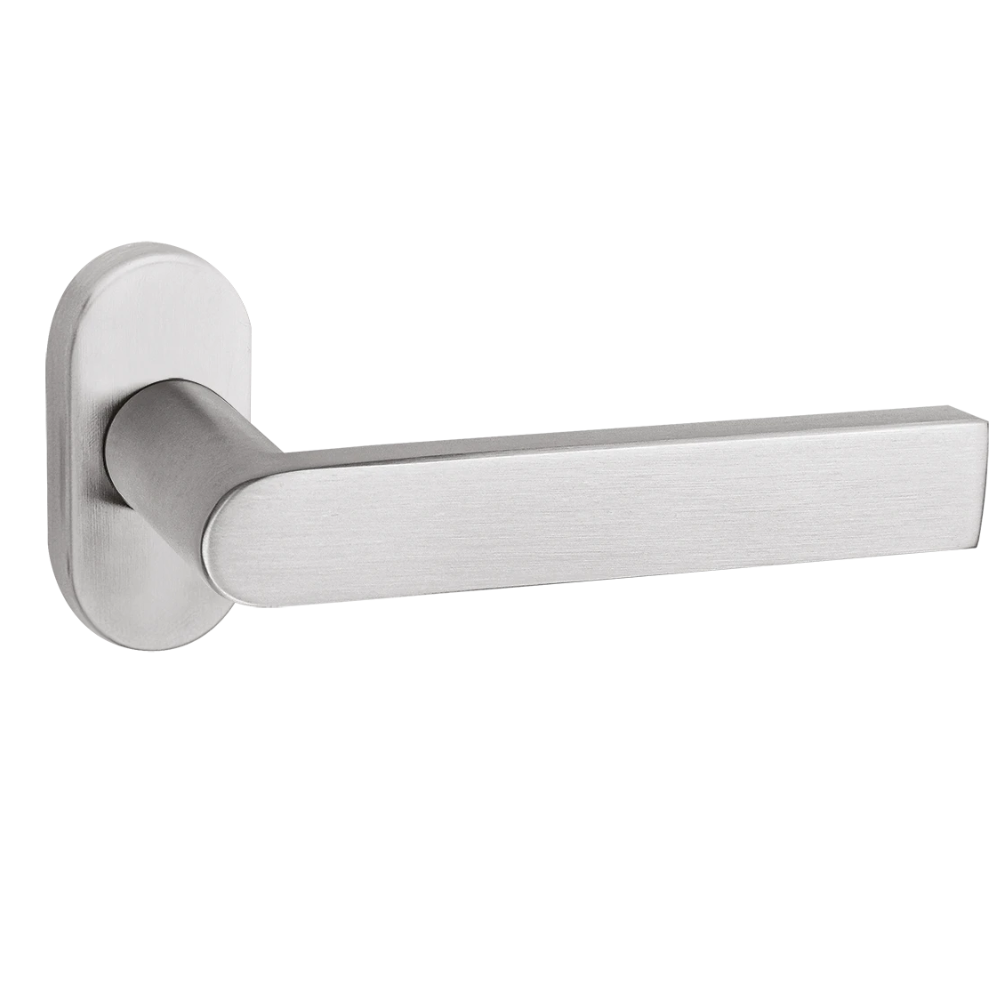 Oltre alla robustezza, il design mantiene la raffinata rosetta ovale da 30x60 mm. Con uno spessore di 10 mm, la rosetta si fonde elegantemente con la superficie del serramento. L'impugnatura lineare di 125 mm offre un feeling tattile molto solido, trasmettendo immediatamente la qualità costruttiva del metallo pieno. In aggiunta, la sporgenza totale di 50 mmassicura una leva efficace senza risultare ingombrante nel passaggio.