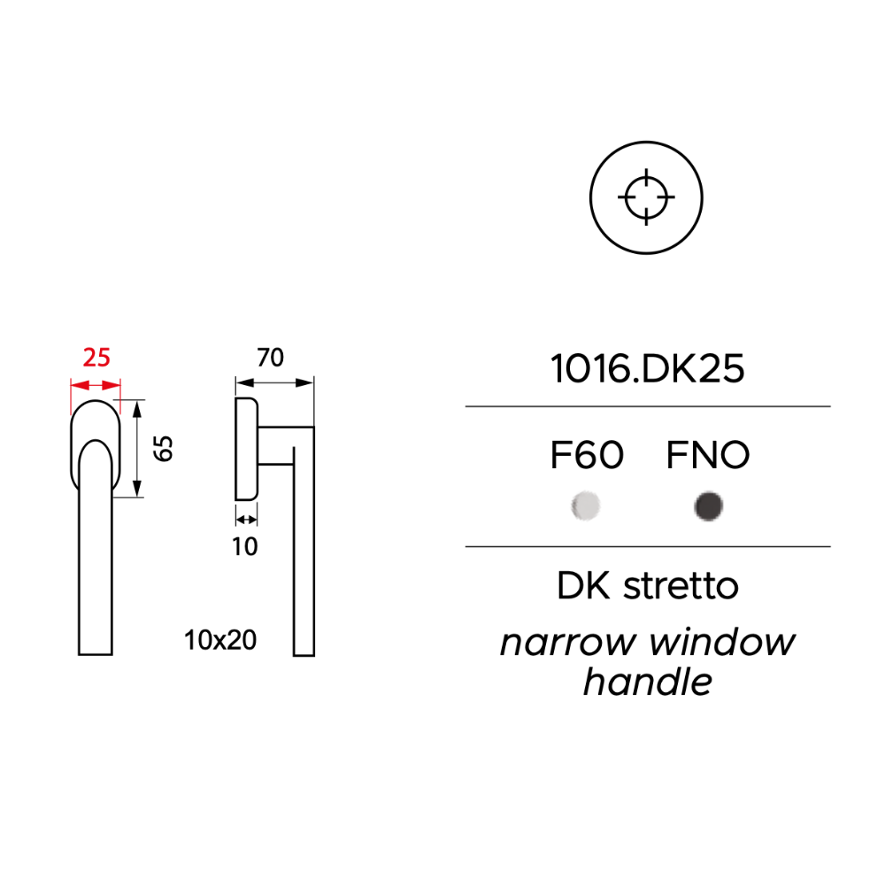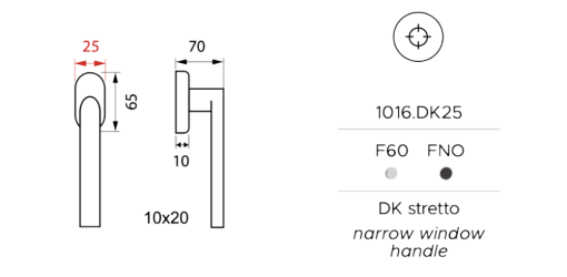 In primo luogo, è fondamentale sottolineare la principale differenza tecnica rispetto alla versione classica: mentre il modello standard (1016/DK) monta una rosetta larga 30 mm, la versione DK25 riduce questa misura a soli 25 mm. Di conseguenza, questa riduzione risulta decisiva per permettere l'installazione su serramenti in alluminio o PVC a sezione ridotta dove lo spazio di manovra sulla cornice è estremamente limitato.