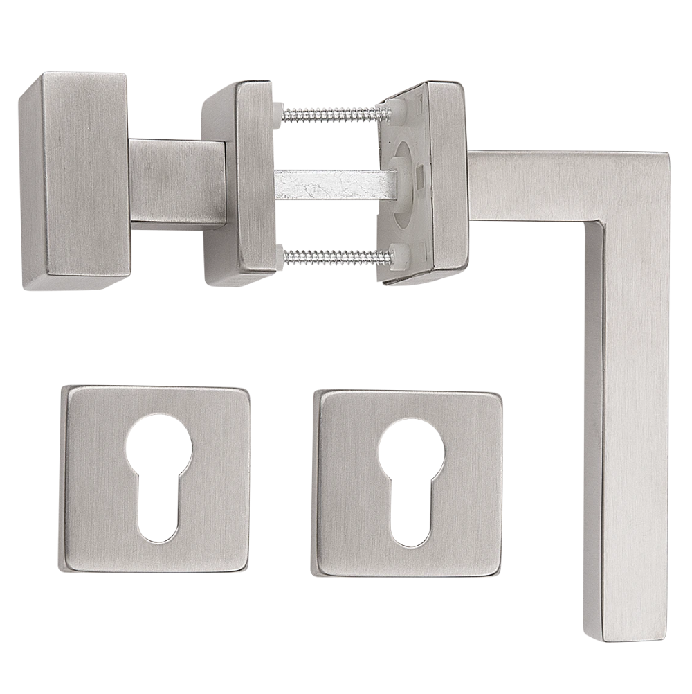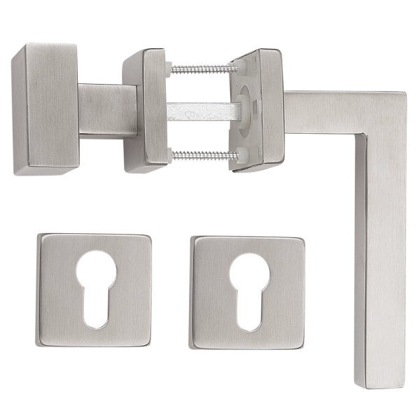 Per quanto riguarda i materiali, l'azienda utilizza esclusivamente Acciaio Inox AISI 304. Di conseguenza, la struttura risulta estremamente solida e durevole. Oltre a ciò, la resistenza alla corrosione è garantita nel tempo. Un altro aspetto fondamentale riguarda la meccanica di fissaggio. Infatti, il prodotto include una sottorosetta in plastica ad alta resistenza. Tale componente semplifica l'installazione sul pannello della porta. Allo stesso tempo, assicura un allineamento millimetrico delle rosette quadrate.