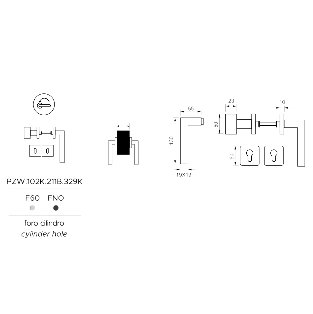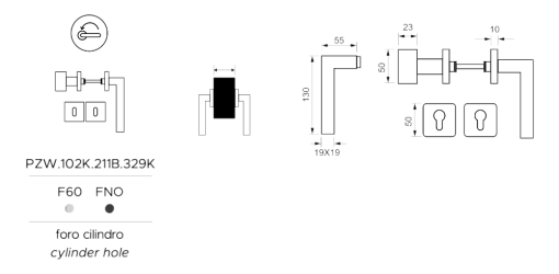 Relativamente alla sicurezza, il set nasce con la configurazione per cilindro europeo (PZW). Pertanto, è la scelta ideale per uffici e abitazioni private. Dal punto di vista estetico, le opzioni sono due. Da un lato, la finitura Inox Satinato (F60) valorizza la purezza del metallo. Dall'altro lato, la versione Nero Opaco (FNO) offre un look contemporaneo e deciso.