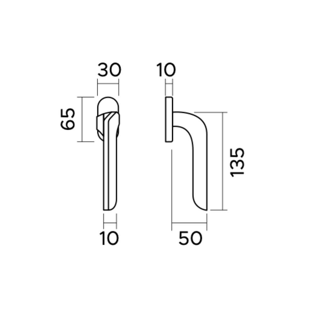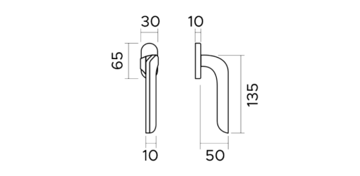 Inoltre, il design tecnico si focalizza sulla rosetta ovale, che presenta una larghezza di 30 mm e un'altezza di 65 mm. A questo riguardo, le dimensioni della base sono studiate appositamente per adattarsi ai profili d'infisso contemporanei. Pertanto, si mantiene un ingombro minimo senza rinunciare alla stabilità, garantita da uno spessore della base di 10 mm.