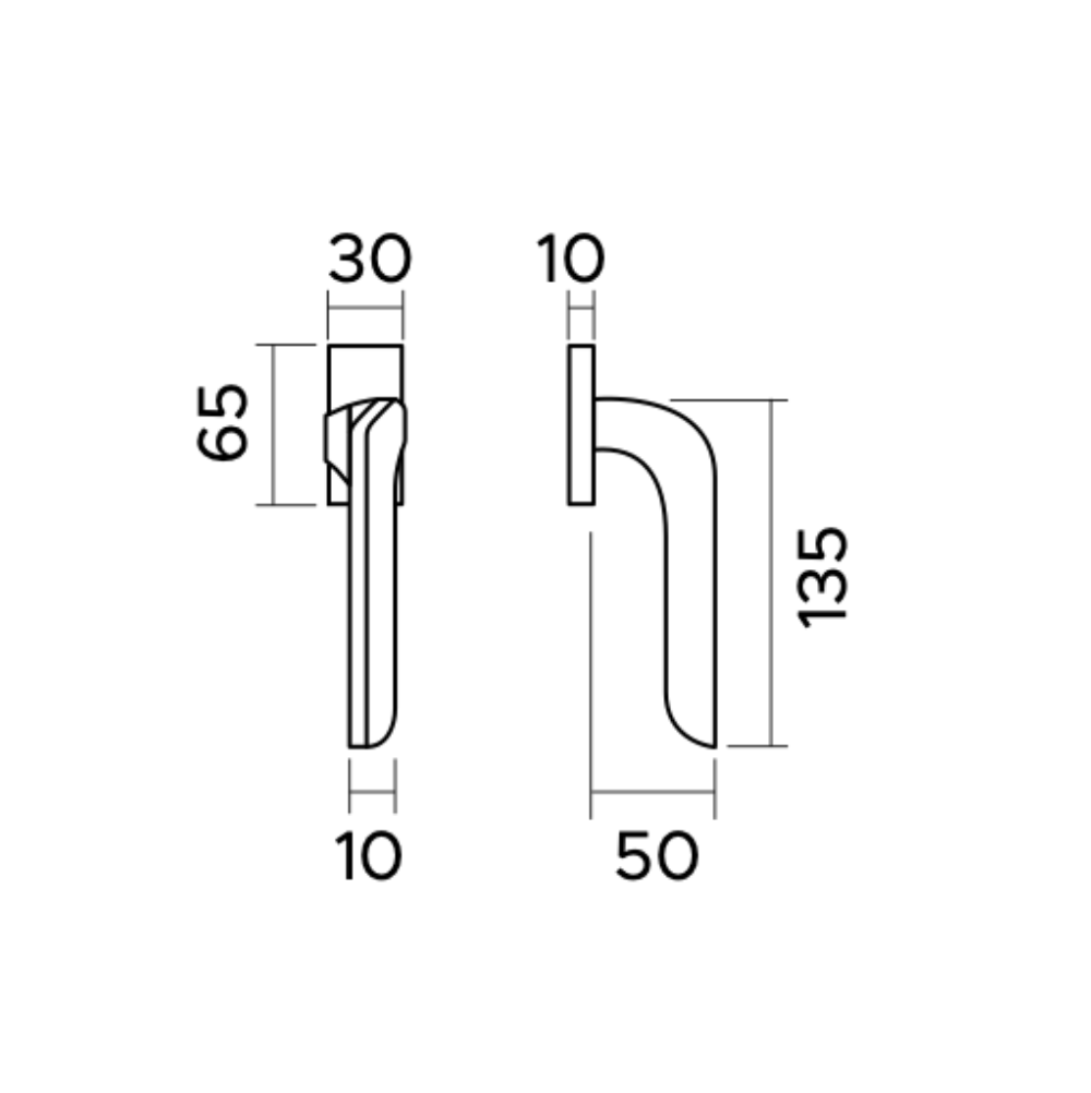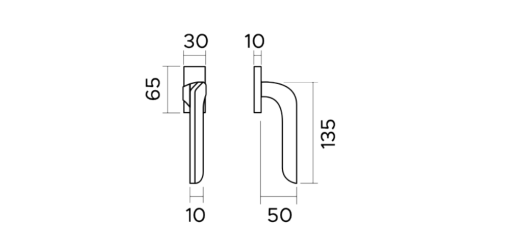 In aggiunta alla qualità del materiale, il design si focalizza sulla rosetta rettangolare con una larghezza di 30 mm e un’altezza di 65 mm. A questo riguardo, le dimensioni contenute della base ne permettono l’installazione agevole anche su profili d’infisso moderni e sottili, senza compromettere la stabilità del fissaggio. Nello specifico, l’impugnatura sviluppa una lunghezza di 135 mm, proponendo una sagoma ergonomica che accompagna il movimento della mano durante l’apertura e la chiusura.