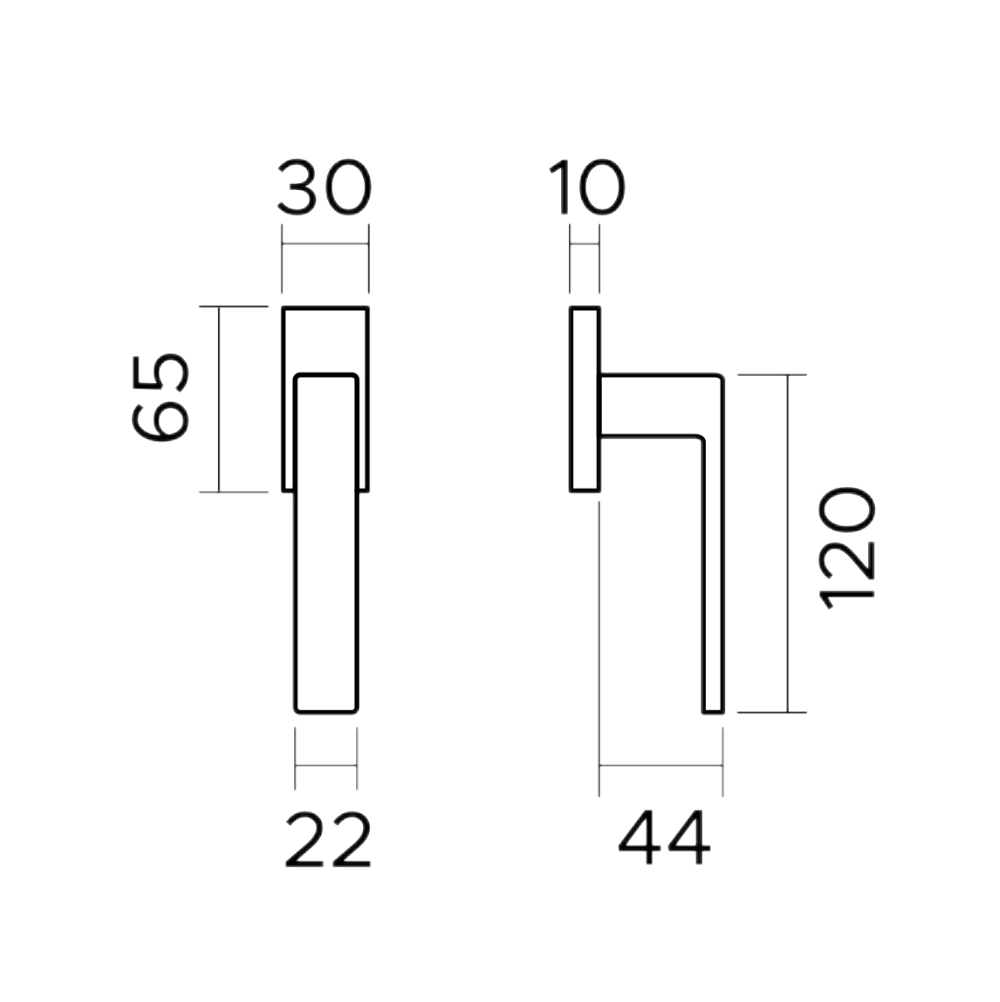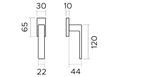 In secondo luogo, le caratteristiche tecniche della martellina 1317/DKR sono state sviluppate per offrire un montaggio semplice e una resa estetica impeccabile. Il modello monta infatti una rosetta rettangolare con dimensioni di 30 x 65 mm e uno spessore contenuto di 10 mm, ideale per non appesantire il profilo del serramento. Allo stesso tempo, l'impugnatura presenta una lunghezza di 127 mm e una sezione di 21 mm, garantendo una leva ergonomica e una presa sicura in ogni fase di utilizzo. Di conseguenza, la sporgenza complessiva di 43 mm è stata ottimizzata per evitare qualsiasi tipo di interferenza con tende o schermature solari interne.