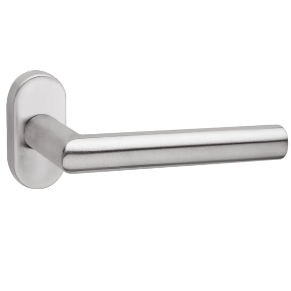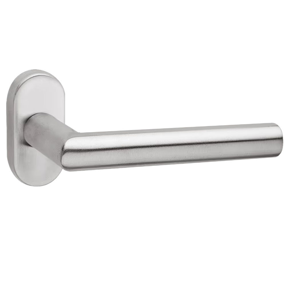 In questo modello, infatti, l'estetica moderna si sposa con la funzionalità della molla di ritorno integrata. Tale meccanismo permette alla maniglia di ritornare sempre orizzontale dopo l'uso. Di conseguenza, si evita l'usura precoce della serratura e si mantiene un aspetto ordinato sulla porta. In primo luogo, il tratto distintivo è la sua rosetta ovale dalle dimensioni di 30x60 mm. Questa forma geometrica, con uno spessore di 10 mm, offre un supporto stabile e un design ricercato. L'impugnatura vanta una lunghezza di 130 mm e un diametro di 20 mm. Pertanto, la maniglia assicura una presa ergonomica e molto confortevole.
