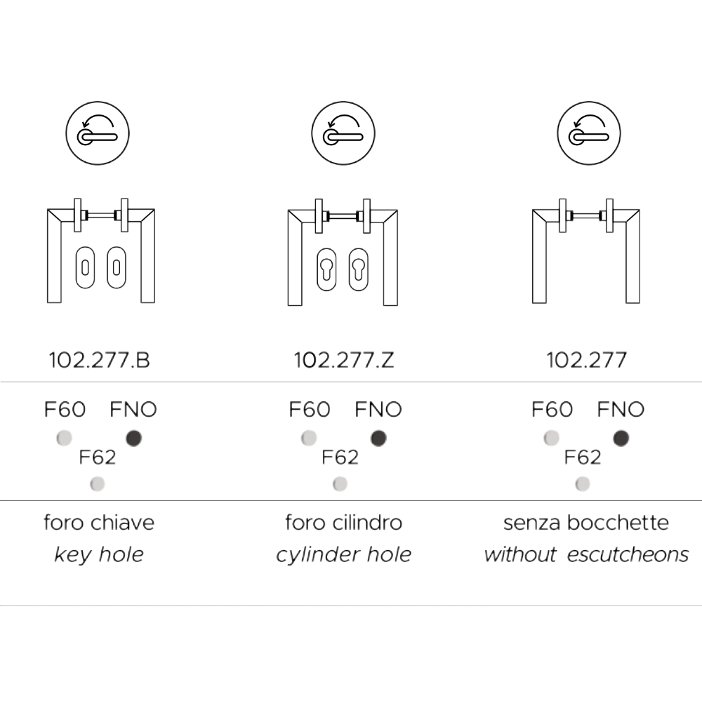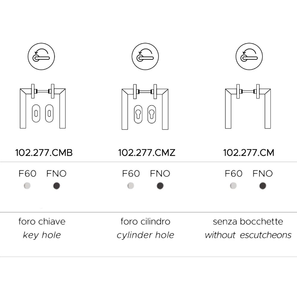- Fori disponibili: Chiave / Cilindro / Senza Bocchette