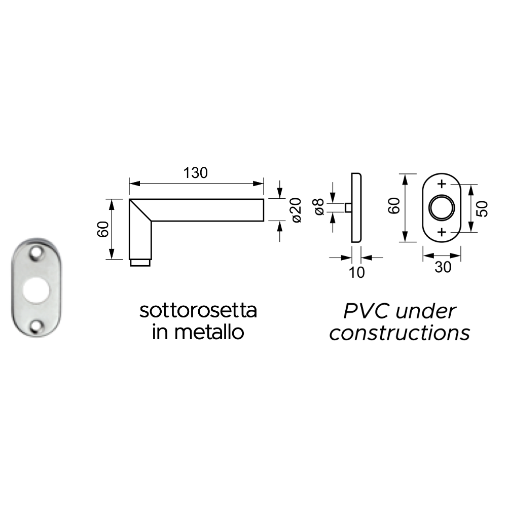 - Dimensioni Rosetta: 30 x 60 mm (ovale)