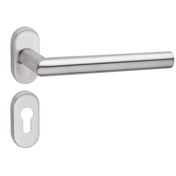 Per quanto riguarda invece la componente estetica, il prodotto adotta una rosetta ovale dalle dimensioni di 30 mm di larghezza per 60 mm di altezza. Tale scelta stilistica conferisce alla porta un aspetto slanciato e moderno, distinguendosi dalle comuni rosette tonde. Allo stesso tempo, la solidità è assicurata dall'impiego integrale dell'Acciaio Inox AISI 304 e dalla presenza di una sottorosetta in metallo (metal under constructions). Questo particolare costruttivo permette senza dubbio un ancoraggio inamovibile al pannello della porta, prevenendo allentamenti o fastidiosi giochi meccanici nel corso degli anni.