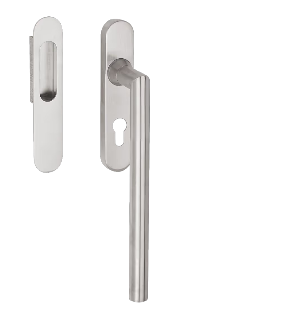 Scegliere la maniglia Fimet Norvegia 104/DKS per finestra di sicurezza significa investire nella protezione della propria abitazione senza rinunciare all'eleganza delle linee contemporanee in acciaio.