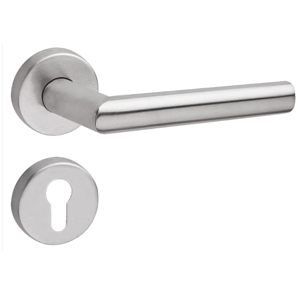Per quanto riguarda invece la costruzione interna, il prodotto si distingue nettamente per l’adozione di una sottorosetta in metallo. Questa scelta tecnica garantisce senza dubbio un ancoraggio meccanico superiore rispetto alle versioni domestiche standard, rendendola ideale per porte soggette a frequenti sollecitazioni quotidiane. Inoltre, l’impugnatura mantiene il design lineare tipico della serie Olanda, con una lunghezza di 130 mm e un diametro di 20 mm. Di conseguenza, la maniglia offre una manovrabilità ottimale e una presa ergonomica in ogni situazione d’uso. In merito alla funzionalità pratica, il set include le bocchette coordinate con foro cilindro, essenziali per garantire il bloccaggio di sicurezza tramite cilindro europeo. Oltre a ciò, la maniglia è equipaggiata con un perno quadro da 9 mm, ovvero lo standard richiesto per le serrature antincendio professionali. Esteticamente, è possibile scegliere tra la finitura Inox Satinato (F60) e il Nero Opaco (FNO), permettendo così di mantenere un’estetica curata anche nei passaggi più tecnici.