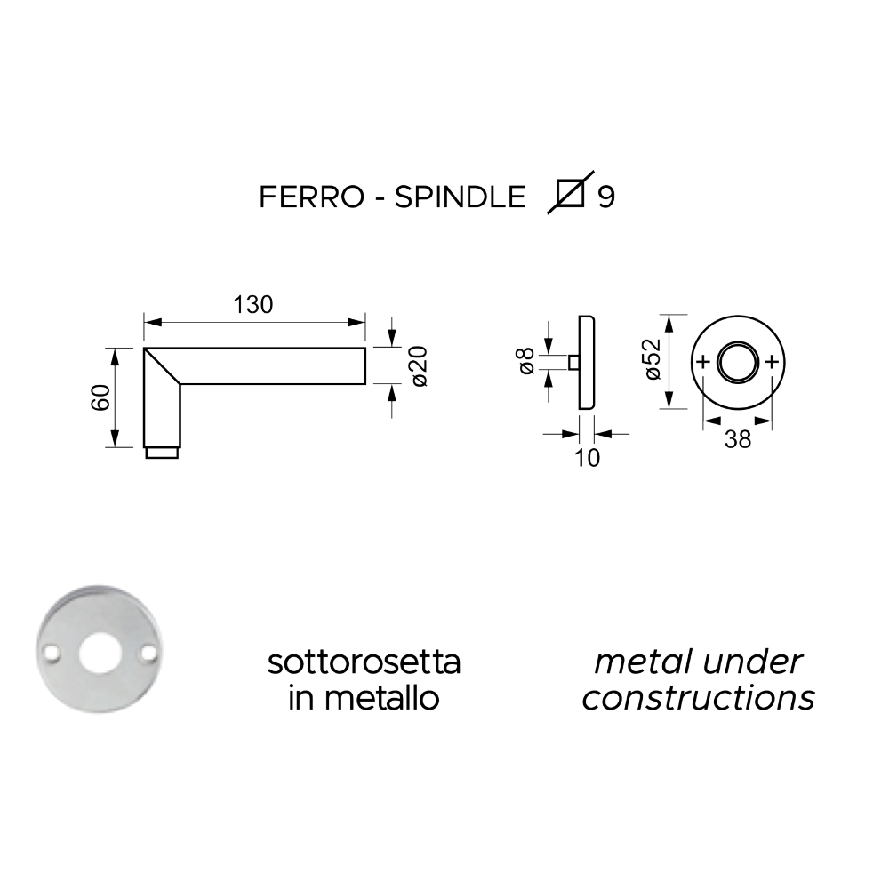 Per quanto riguarda invece la costruzione interna, il prodotto si distingue nettamente per l'adozione di una sottorosetta in metallo. Questa scelta tecnica garantisce senza dubbio un ancoraggio meccanico superiore rispetto alle versioni domestiche standard, rendendola ideale per porte soggette a frequenti sollecitazioni quotidiane. Inoltre, l'impugnatura mantiene il design lineare tipico della serie Olanda, con una lunghezza di 130 mm e un diametro di 20 mm. Di conseguenza, la maniglia offre una manovrabilità ottimale e una presa ergonomica in ogni situazione d'uso.