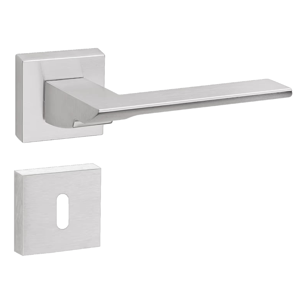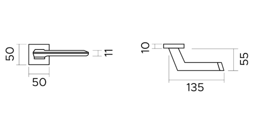 In secondo luogo, il punto focale di questa specifica configurazione risiede nella sua rosetta quadrata da 10 mm di spessore. Questa misura rappresenta lo standard classico della serie, garantendo una profondità visiva che enfatizza il carattere della maniglia sulla porta. Effettivamente, la rosetta da 50 x 50 mm è dotata di un sistema a clip con sottorosetta in plastica tecnica molto resistente. Tale accorgimento semplifica notevolmente le operazioni di posa e assicura una stabilità meccanica perfetta. Inoltre, l'impugnatura da 135 mm di lunghezza offre una leva ergonomica eccellente. In questo modo, l'apertura risulta sempre fluida e confortevole, supportata da una sporgenza totale di 55 mm. Proprio per questo motivo, la maniglia risulta piacevole al tatto anche dopo un utilizzo prolungato.