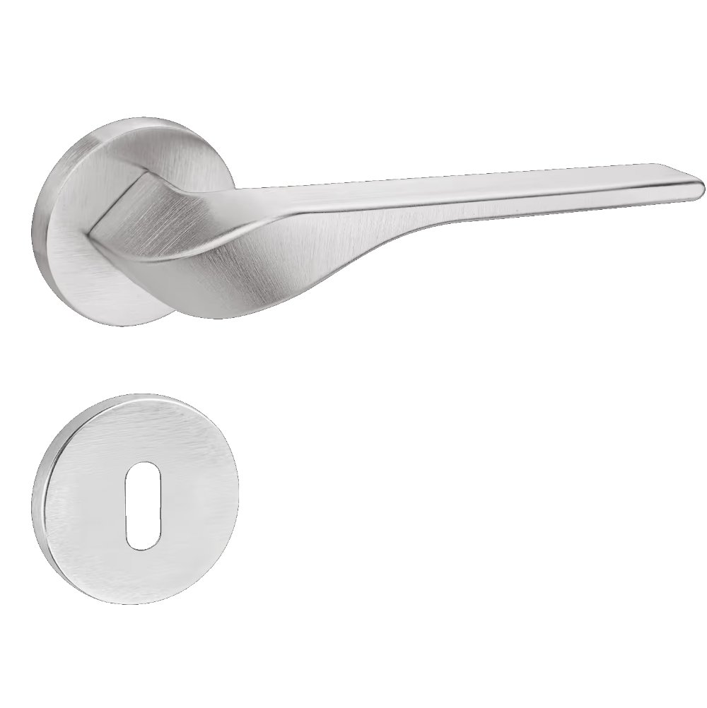 La maniglia Fimet Alicia 1220/208, nella sua configurazione con rosetta tonda, è un classico del design contemporaneo italiano.