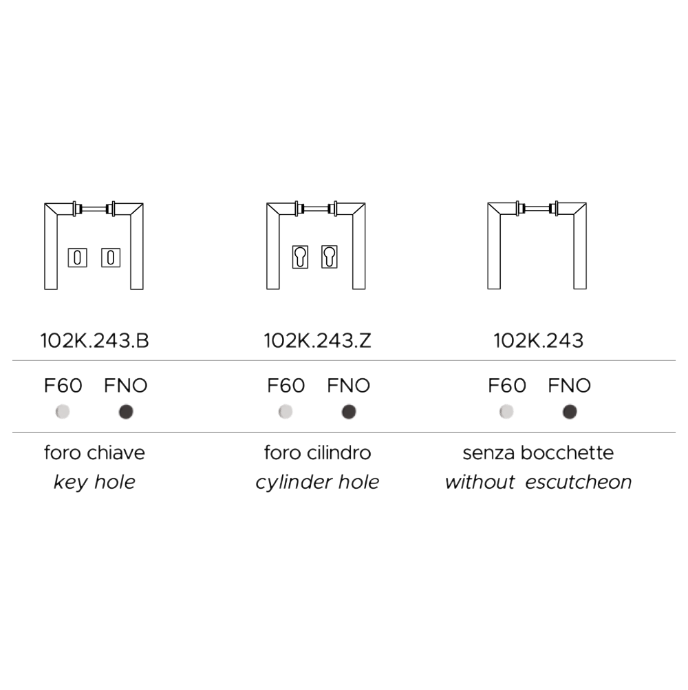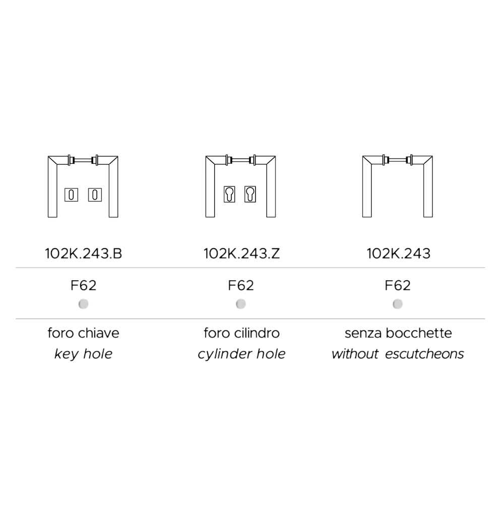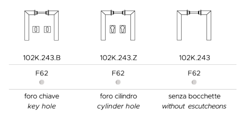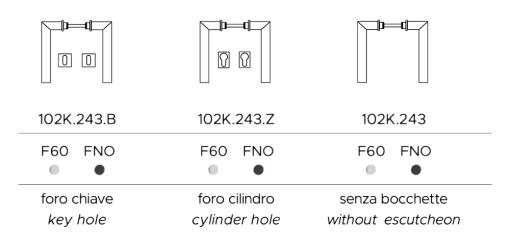 - Fori coordinati disponibili: Chiave / Cilindro / Nottolino WC