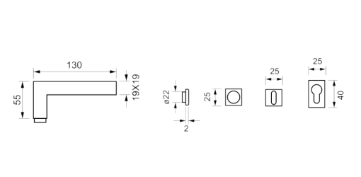 - Diametro collo maniglia: 22 mm