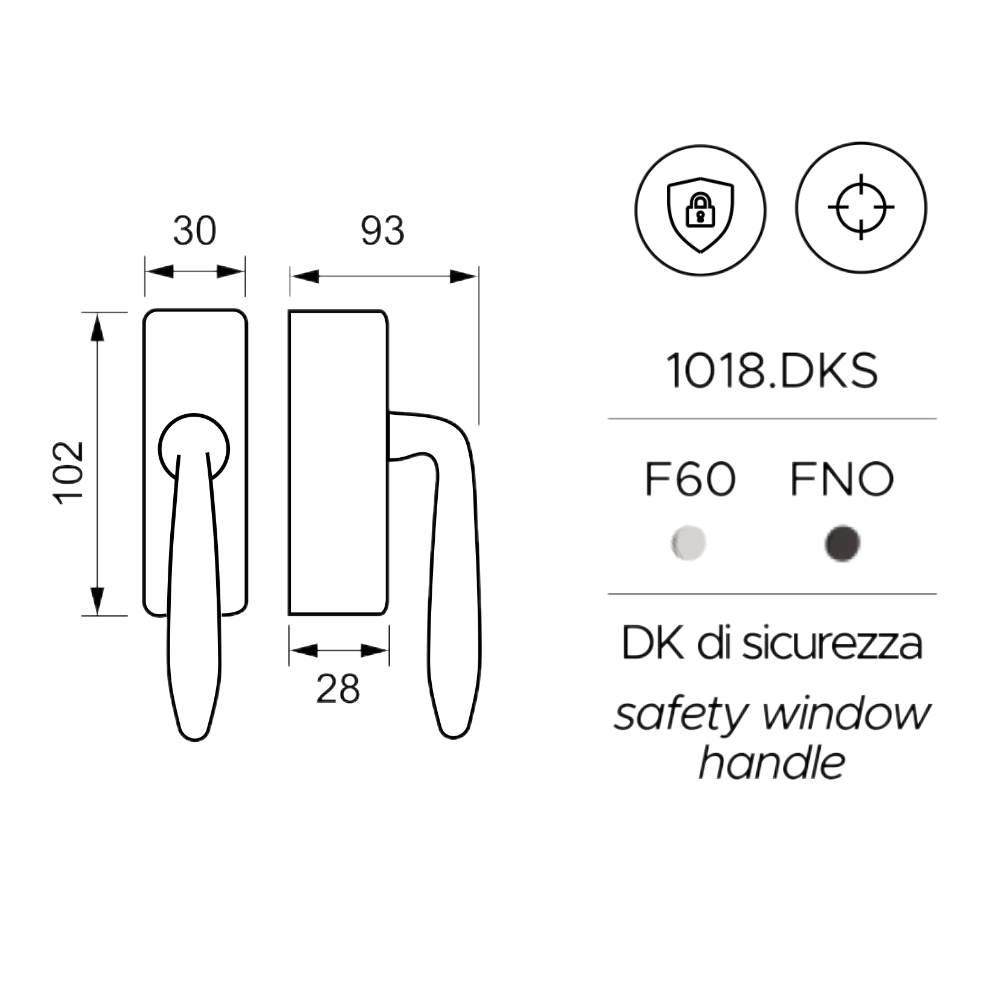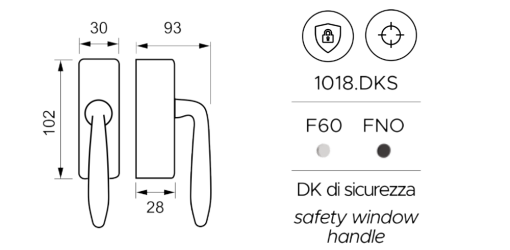 - Tipologia: Maniglia per finestra DK di sicurezza (Safety window handle)