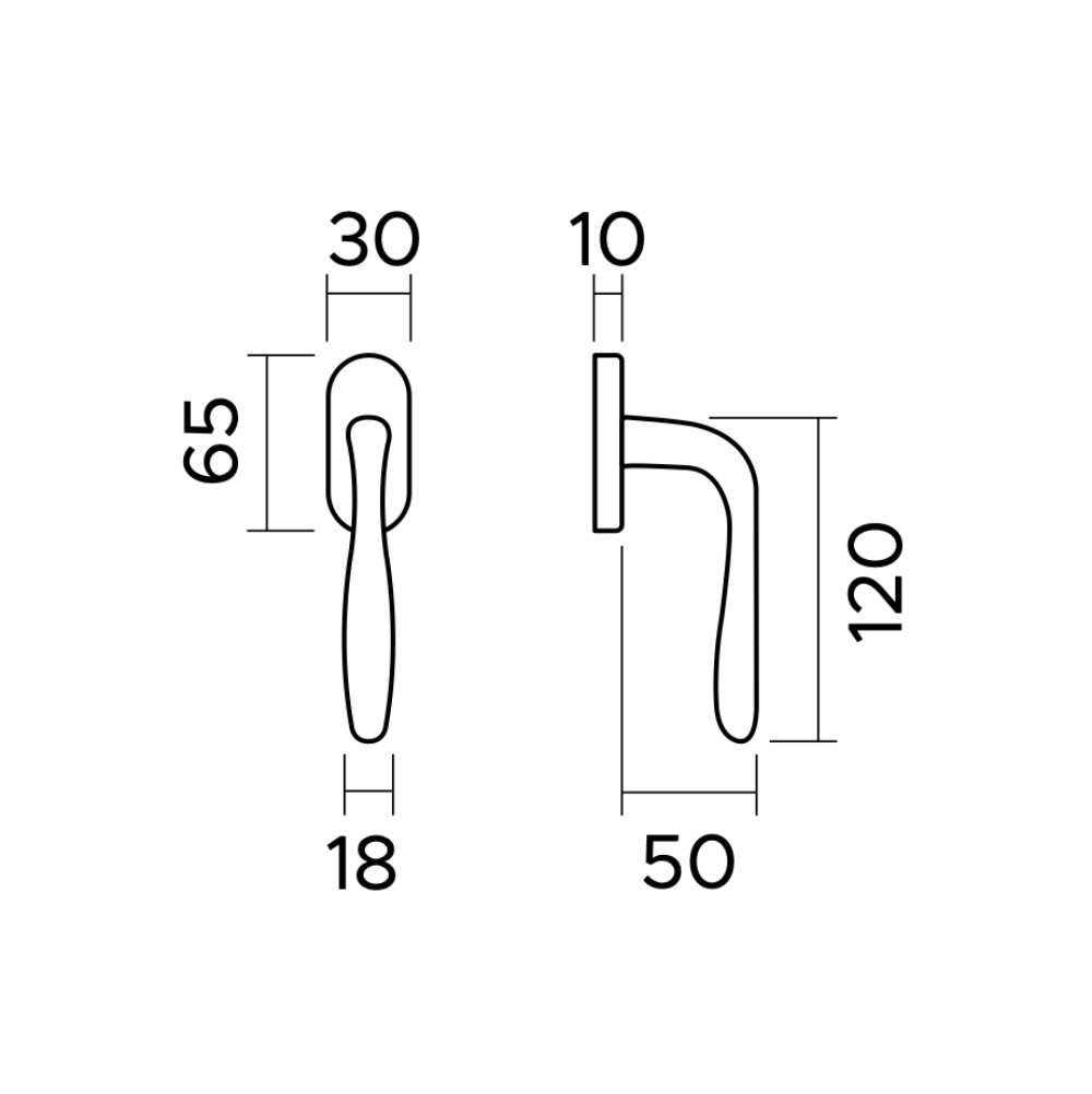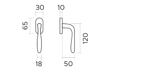 In secondo luogo, occorre precisare che le dimensioni sono state calibrate meticolosamente per assicurare sia l'ergonomia che la discrezione visiva. Nello specifico, l'impugnatura presenta una lunghezza di 120 mm, una sporgenza totale di 50 mm e una larghezza di 18 mm, parametri che offrono una presa sicura e naturale per l'utilizzatore finale. Per quanto riguarda la base, la rosetta ovale possiede una larghezza di 30 mm e un'altezza di 65 mm, mentre lo spessore contenuto di 10 mm assicura un ingombro minimo sul profilo dell'infisso.