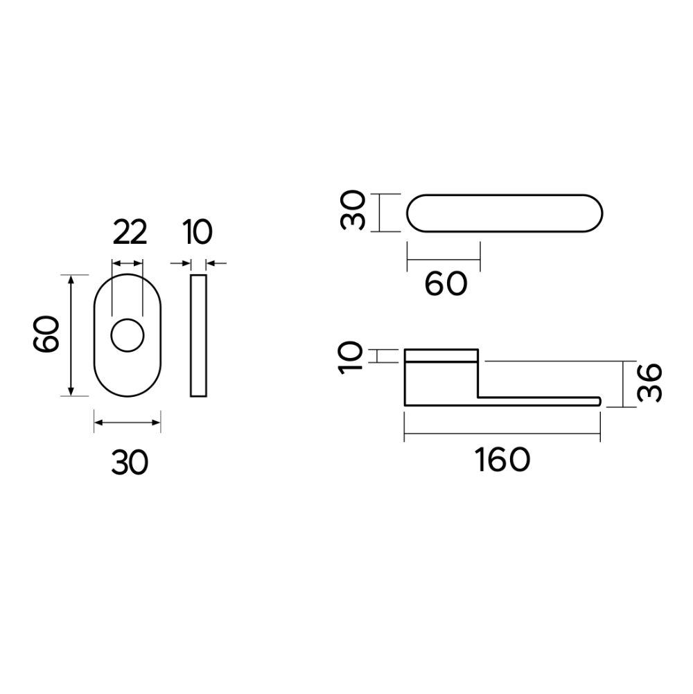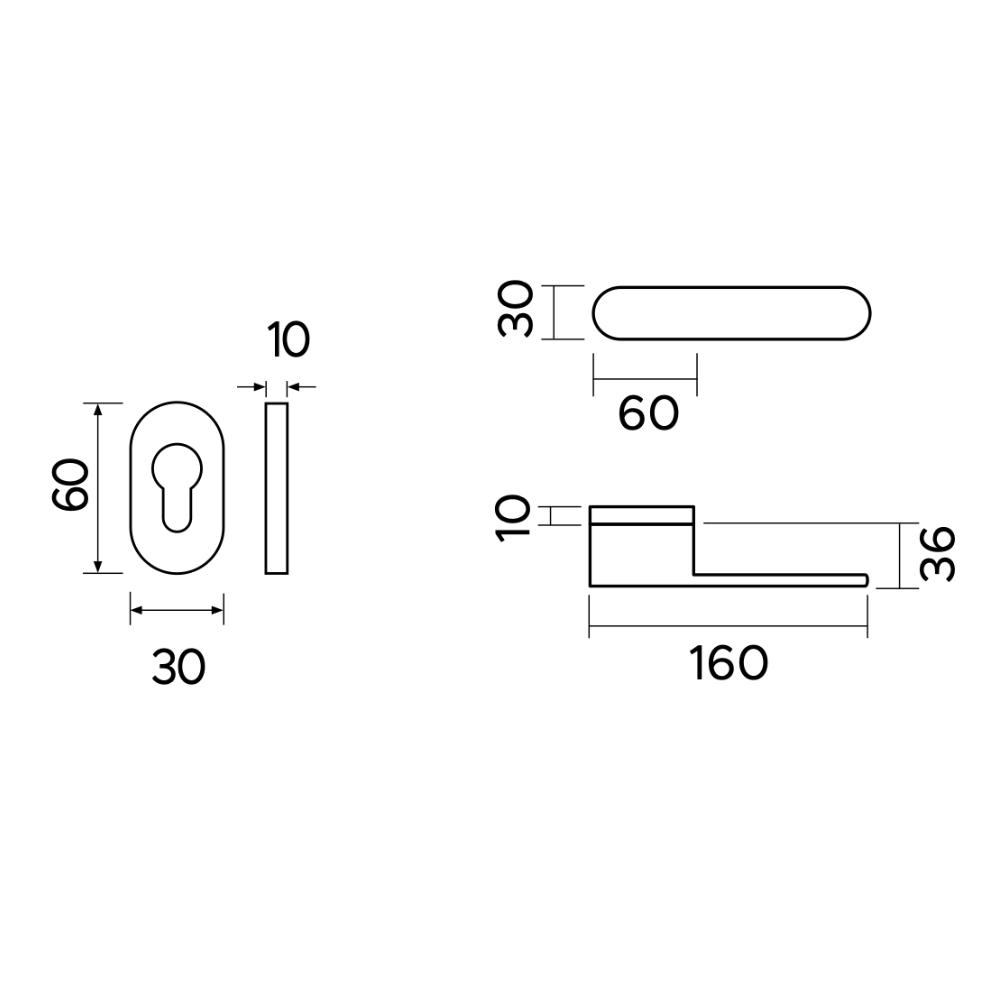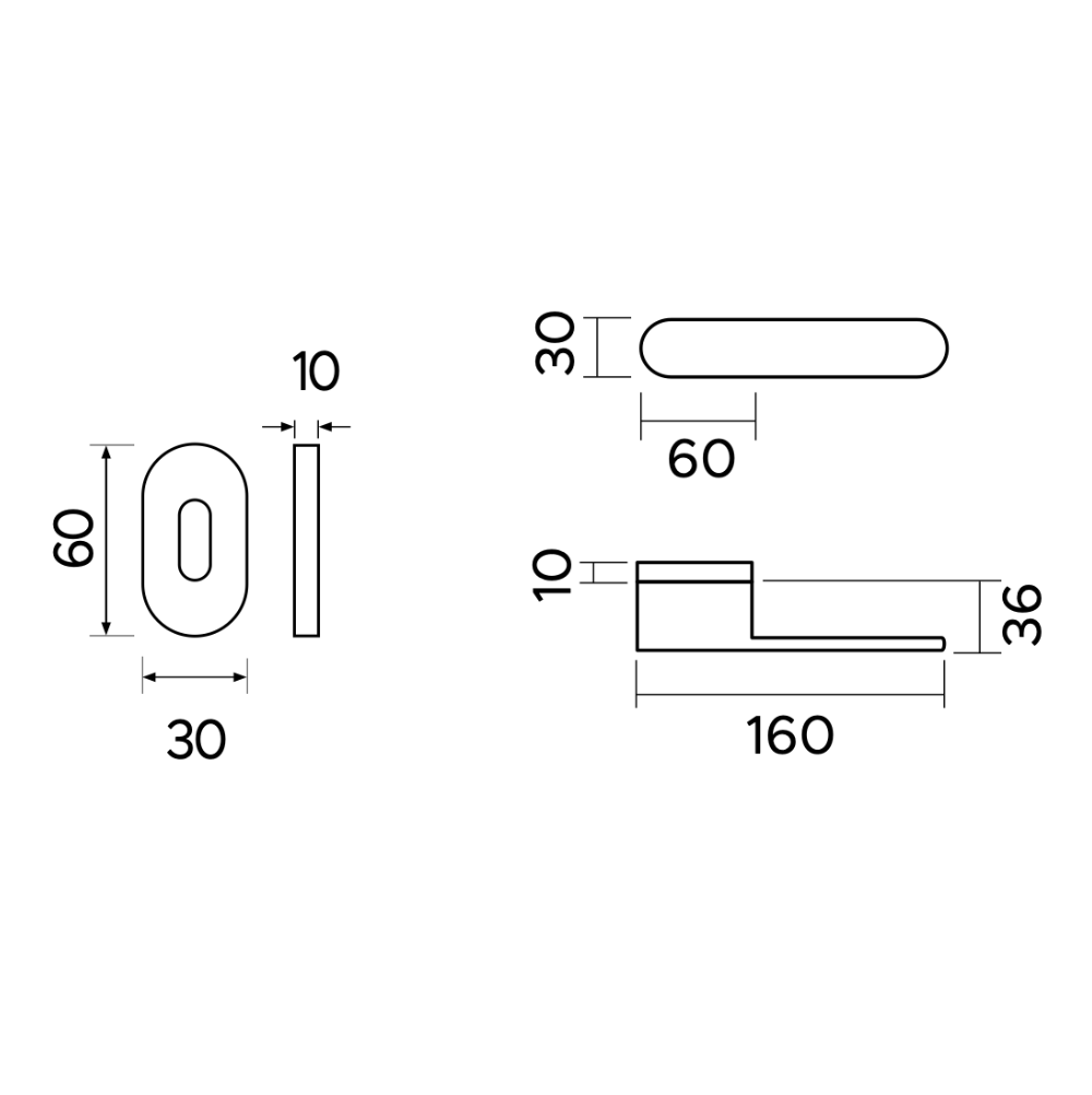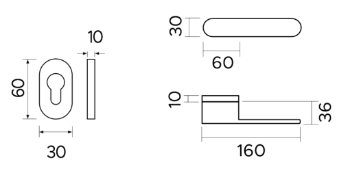 - Dimensioni Rosetta: 30 x 60 mm