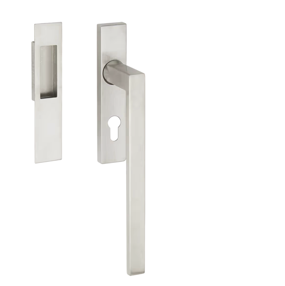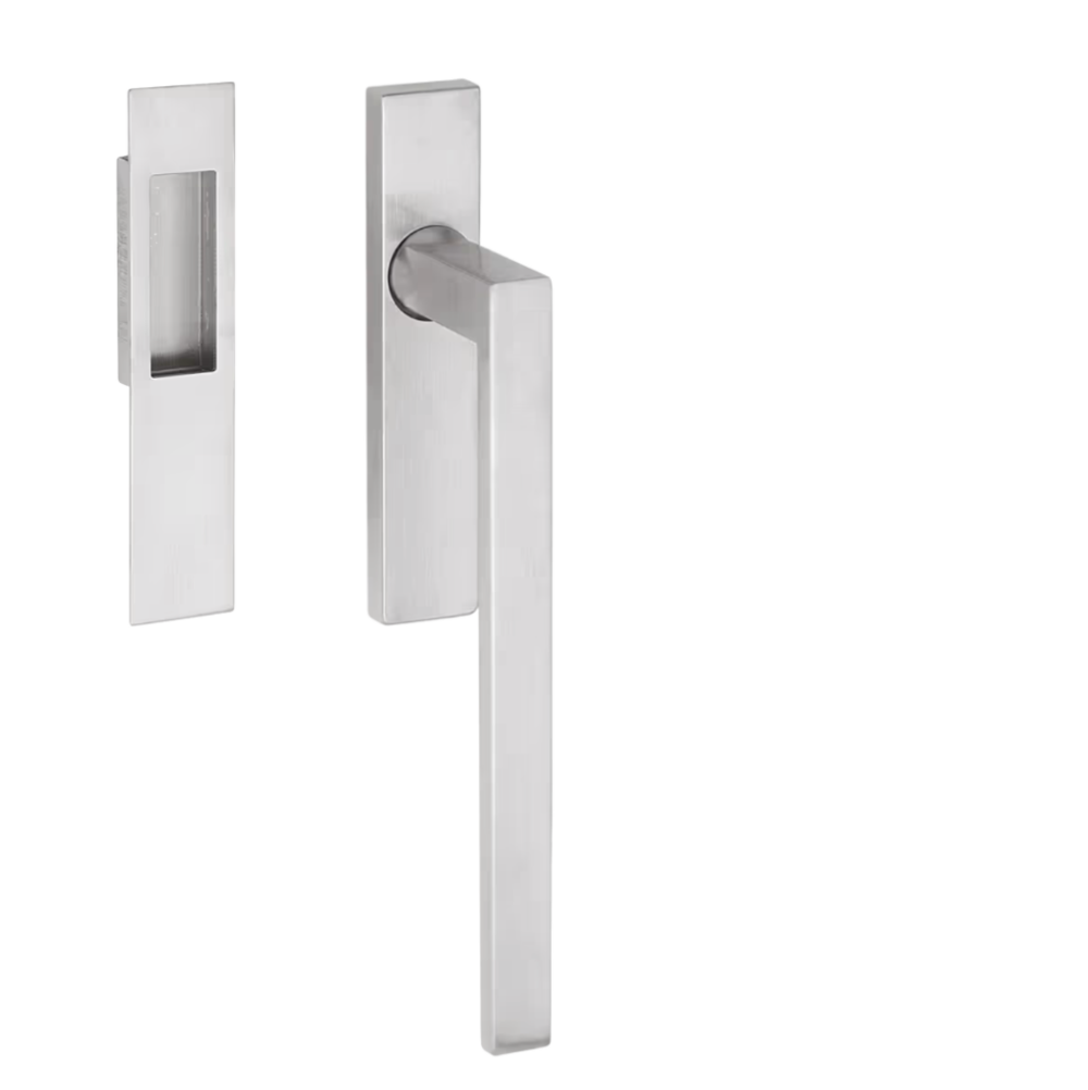 Innanzitutto, l'impiego dell'acciaio inox di alta qualità garantisce una robustezza strutturale indispensabile per movimentare agevolmente ante di grandi dimensioni e pesi sostenuti. In secondo luogo, il design rigorosamente Made in Italy assicura finiture impeccabili in ogni componente. Ad esempio, la satinatura orizzontale esalta sapientemente la purezza delle forme squadrate. Di conseguenza, l’estetica del serramento viene elevata a un livello superiore.