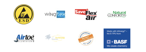 - AirTech + Tpu-Skin®: Tecnologia che permette di ridurre lo strato rigido del battistrada per aumentare l'ammortizzazione, trasformando la suola in un cuscinetto defaticante